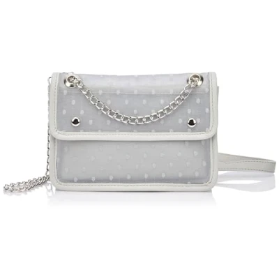 Mesh handbag Embroidered with polka dots Zip with heart pendant Flap with magnetic closure Textile inner lining