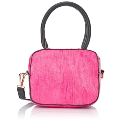 Trendy handbag Glossy textured finish Short handle Detachable and adjustable shoulder strap Main compartment with zip