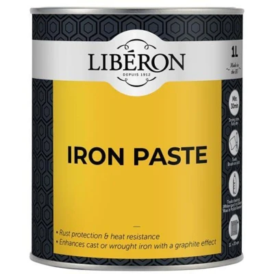 General description Liberon Iron Paste is a black graphite paste designed to protect and enhance cast and wrought ironwork. It adheres firmly to surfaces, minimizing the risk of rust and preventing flaking. This paste can be polished to achieve a high shine, making it particularly suitable for ornamental ironwork, cast iron grates, and fire irons. It is also ideal for renovating non-working cast iron fireplaces and surrounds. Technical specifications Dry Time: 2 to 4 hours Location: Interior Application: Brush or Cotton Cloth Tool Cleaning: White Spirit or Wax & Polish Remover