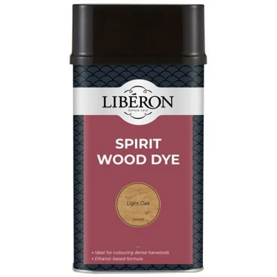 General description The Liberon Spirit Wood Dye in Light Oak is a traditional, ethanol-based dye designed to penetrate deep into the wood, making it ideal for coloring dense hardwoods such as mahogany and oak. It is suitable for both new and reclaimed timbers and can also be used for antique restoration on previously finished woods. The dye is easy to apply and can be mixed with other colors to create unique shades. Technical specifications Volume: 1 litre Coverage: 8-16 m² per litre Dry Time: 1-6 hours (minimum) Application Method: Brush or Cloth Tool Cleaning: Methylated Spirit Usage Suitable for interior use Can be overcoated with wax, oil, or varnish Ideal for coloring dense hardwoods and previously finished woods