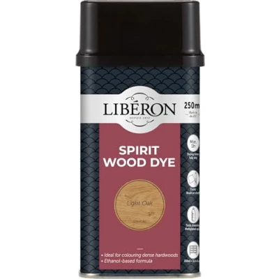 General description Liberon Spirit Wood Dye is a traditional dye specifically designed for hardwood and furniture restoration. It penetrates deeply into the wood, enhancing color and finish. This dye can be mixed with other shades to achieve intermediate tones and is suitable for coloring dense hardwoods such as mahogany and oak. It is also ideal for coloring previously finished woods, making it perfect for antique restoration. Technical specifications Type: Spirit-based wood dye Color: Light Oak Size: 250ml Coverage: Approximately 10-12 m² per litre Drying time: Minimum 6 hours Installation Apply using a brush or cloth for even coverage Mix different shades to customize color Allow a minimum of 6 hours to dry before handling or finishing Usage Ideal for furniture restoration, hardwood coloring, and antique finishing Use on interior wood surfaces Mix with other intermixable colors to achieve desired shades Other information For best results, clean tools with methylated spirit after use