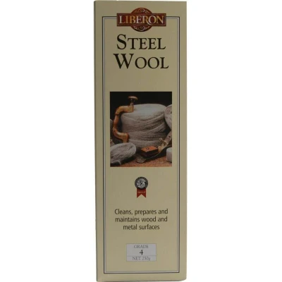 General description Liberon Steel Wool is produced from high-quality steel, creating a crumble and dust-resistant wool that is virtually oil-free. It can be used on a variety of materials including wood, metal, porcelain, and glass. Available in several grades, the choice of steel wool depends on the planned usage. Technical specifications Weight: 250 grams Grade: 4 Usage Ideal for heavy stripping and cleaning work, particularly for stripping paint and varnish from wood. Suitable for cleaning beams, panels, and wooden floors. To avoid cuts, never tear steel wool; cut to size with scissors or shears and always protect your hands with gloves when handling.