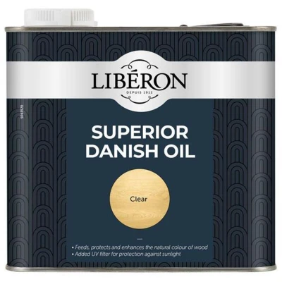 General description Liberon Superior Danish Oil is a premium blend of pure, high-quality Tung oil and natural oils designed to feed, enhance, and protect both hard and soft woods. This penetrating oil accentuates the natural grain of the timber while providing a satin to gloss sheen. With added UV filters, it helps prevent discoloration from sunlight and is resistant to water, heat, and alcohol, making it suitable for both interior and exterior applications. Technical specifications Volume: 2.5 litres Coverage: 10-12 m² per litre Dry Time: 5 hours minimum Application Method: Brush or Cloth Tool Cleaning: White Spirit