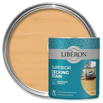 General description Transform and protect your outdoor timber with Liberon Superior Decking Stain. Designed to provide a water-resistant, UV-resistant, and anti-slip finish, this versatile stain ensures your exposed wood remains beautiful and durable through all seasons. It forms a robust protective barrier against weathering, sunlight, and extreme temperatures ranging from -10°C to +35°C. Technical specifications Volume: 2.5L Temperature range: -10°C to +35°C Water-based product Preparation Ensure wood is clean, dry, and in good condition. Remove previous finishes and dust. Round off corners and edges by sanding lightly. Lightly sand new wood. Use Liberon Tough Deck Clean and Revive for old wood. Expose hardwoods for up to 12 months before application to improve adhesion. Application Test on an inconspicuous area, especially for exotic hardwoods. Apply in dry weather, between 12°C and 25°C. Stir well before use. Use a brush or roller to apply a thin coat. Allow 2 hours drying time