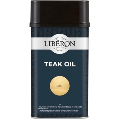 General description The Liberon Teak Oil is a premium blend of pure tung oil and linseed oil designed to nourish and enhance the natural beauty of hard, exotic, and oily woods, including teak, rosewood, and iroko. With added UV filters, this oil provides protection against fading from sunlight, making it suitable for both interior and exterior use. It achieves a traditional cabinet maker's finish, resulting in a hard-wearing satin finish that is ideal for garden furniture. Technical specifications Size: 1 Litre Coverage: 10-12 m² per litre Drying Time: 24 hours Application: Brush or cloth Tool Cleaning: White Spirit Usage Suitable for interior and exterior woodwork Ideal for use on garden furniture Safe for use on toys Other information