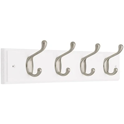 Liberty 129849 18 Inch Coat and Hat Hook Rail/Rack with 4 Heavy Duty Hooks, White Satin Nickel