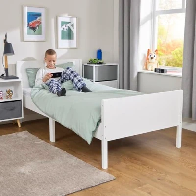 FEATURES: Ideal for children from aged 4 years+. This is a perfect bed for your child’s comfort and safety and the bright white colour will complement the overall aesthetic of your kid’s bedroom with its sense of harmony and tranquillity. FUNCTIONALITY: Our classic Kids Single White Bed has an enduring style and will look great in any kids’ bedroom. With its clean lines, comfort and functionality this bed offers the perfect blend for your kids’ room. VALUE: Children will transition from their Toddler bed at different ages, but it is common for a child to change to their ‘big kids’ bed’ around the age of 4. This is the most common bed size for children as they grow into their teenage years. STURDY AND SAFE: Made from durable engineered wood to ensure many years of use. Complies with all relevant safety standards. DIMENSIONS: H80 x W95 x L199cm, recommended mattress size 190 x 90mm (not included). This set comes flat packed and only requires simple assembly. Bedding not included.