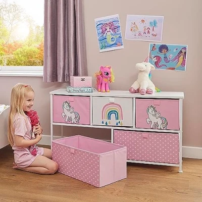 Liberty House Toys Kids Unicorn 5 Drawer Storage Chest, Pink