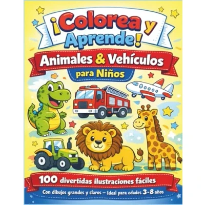 Libro de Colorear Animales y Vehículos para Niños: 100 Dibujos Fáciles Divertidos Aprender Jugando