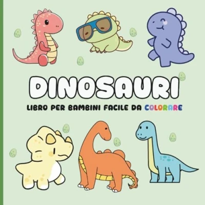 Libro facile da colorare per bambini, dinosauri