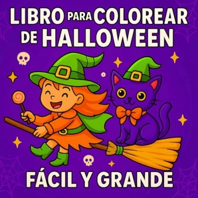 Libro para Colorear De Halloween Grande y Fácil: 50 Dibujos Lindos Espeluznantes Niños, Adolescentes Adultos Relajarse