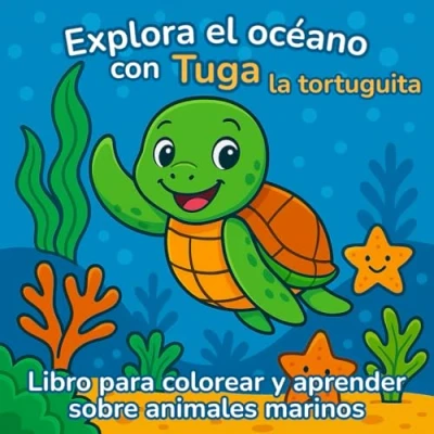 Libro para colorear y aprender sobre animales marinos: Explora el océano con Tuga la tortuguita