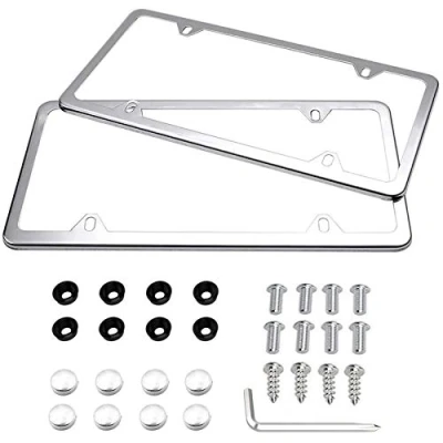 New Slim Style Design. Will Not Block State Tags.4 Holes License Plate Frame Make your car more solid. 100% STAINLESS STEEL PROTECTION: crafted with high quality stainless steel for long-lasting corrosion protection. This sleek and simple frame is polished to a mirror 'chrome-like' finish, bling-y and rustproof HARDWARE INCLUDED: All Accessories needed are included (Screws, Screw Caps, Screw Fasteners, Screwdriver). 8 piece self-adhesive foam pads can be attached to the back corners of the frame that can avoid frication and scratches on your vehicle EASY TO INSTALL: quick and simple installation with easy to follow instructions International products have separate terms, are sold from abroad and may differ from local products, including fit, age ratings, and language of product, labeling or instructions.