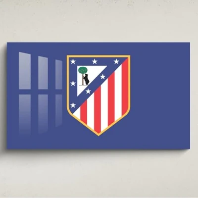 Licensed Décor Atlético de Madrid Acrylic Wall Art Small (65cm (w) x 40cm (h) Full Colour Crest on Brand Blue