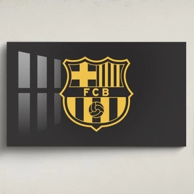 Licensed Décor FC Barcelona Acrylic Wall Art Medium (100cm (w) x 60cm (h) Yellow Crest on Black