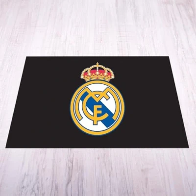 Licensed Décor Real Madrid Mat Extra Large (200cm (w) x 150cm (h) Full Colour Crest on Brand Black