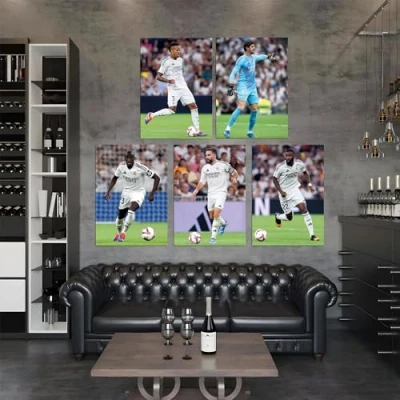 Officially licensed product of Real Madrid CF. Certification included. A % of this sale goes back to your club. Football poster set (sold as set of 5) that feature Real Madrid CF superstars Courtois, Carvajal, Militao, Rudiger & Mendy Great wall decoration Great football gift Sold as a set of 5.Available in 3 different set sizes Printed using UV inks on high quality vinyl for long lasting vibrant colours FRAME NOT INCLUDED