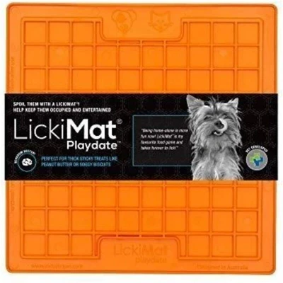 LickiMat Classic Playdate, Dog Feeding Mat for Boredom and Anxiety Relief, Ideal Food, Treats, Yoghurt or Peanut Butter, Lick Mats, Fun Alternative to a Slow Feeder Bowl, Orange