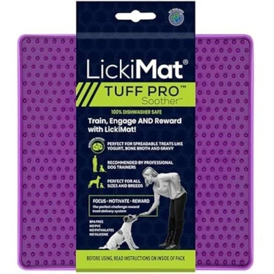 LickiMat PRO Tuff Soother for Dogs, Heavy Duty Dog Lick Mat, Calmer, Alternative to Puzzle Toys and Slow Feeder Bowls. Perfect Peanut Butter, Yoghurt, Healthy Treats Distraction. (Purple)