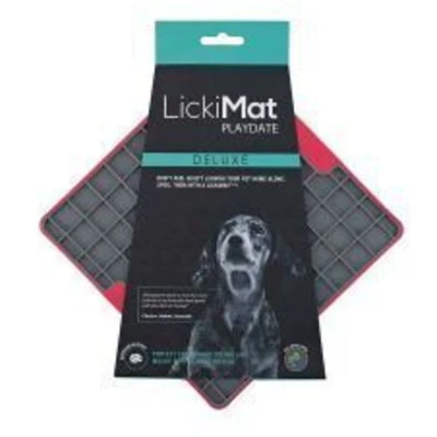 LICKIMAT PLAYDATE DELUXE Lickimats are designed as tasty boredom busters for your cat or dog. By spreading your pet's favourite soft treat over the surface you create a tasty fun game with them having seek out every morsel with their tongue. Freeze treats in summer for refreshing longer lasting entertainment. Works well as a slow feeder for cats. Recommended by vets and animal behaviourists worldwide! Medical free way to promote calm behaviour in your pet while home alone or during stressful times like storms Great for calming pets before a procedure/treatment e.g. at vets or groomers Repetitive licking is soothing for your pet releasing a calming the hormone into the body No over feeding because Lickimat makes a small tasty treat last longer Licking enhances the sense of taste allowing pet to enjoy just a small amount of food Helps promote fresh breath by scraping off bacteria and undigested food particles from the tongue Stimulates saliva production and helps clean tongue teeth and