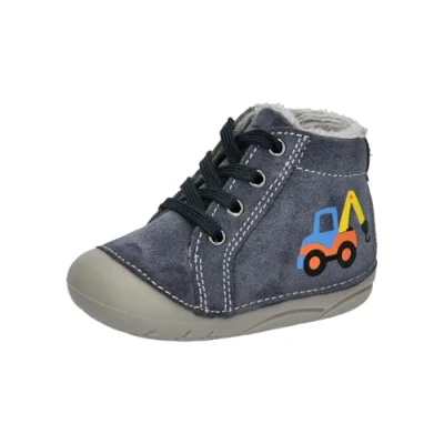 First walker for toddlers Suede Lacing Warm lining (100% polyester) Textile insole with warm lining flexible TPR outsole Recycled cardboard shoe box