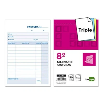Brand: Liderpapel Dimensions : Eighth Print: bills Copy : 2 copies Language: Spanish.