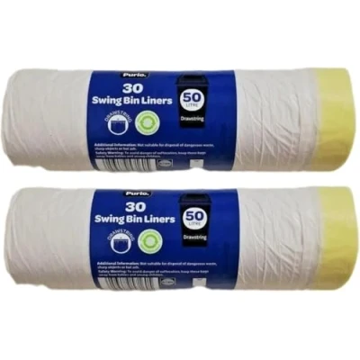 Lidl Purio - 30 Swing Bin Liners | 50 Litres | Drawstring Bag | 76cm x 63cm | x 3 [TRIPLE PACK]