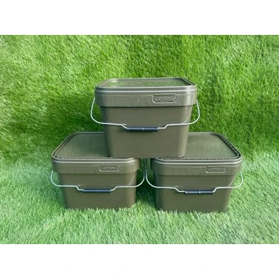 The NEW bucket from LIDSTERS FISHING SUPPLIES USE THE DROP DOWN MENU Well designed from a durable olive green plastic Can be you stacked on top of each other to create a solId tower that the spod anglers amongst you will find very practical Even the predator anglers will find this water tight container a huge asset when travelling around from swim to swim in search of pike whilst transporting live baits.