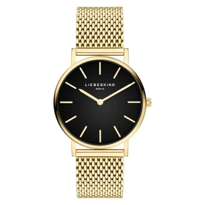 LIEBESKIND Berlin watch made of stainless steel IP gold Polished metal housing, diameter 34 mm; case back, crown and clasp made of stainless steel; scratch-resistant mineral glass, water resistance tested up to 5 bar/ATM Comfortable and durable mesh band; length 75 x 110 mm The collection impresses with its individual and timeless design, in exclusive LIEBESKIND Berlin quality and can be perfectly combined with other pieces of jewellery from our range. An ideal gift for almost any woman (whether for your loved one or best friend, mother, daughter or sister, etc.) or even for yourself and also for any occasion, such as birthday, Christmas, Valentine's Day, Mother's Day and much more.