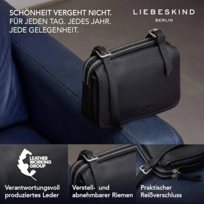 High quality and stylish: made from naturally tanned smooth leather, the Liebeskind Mareike crossbody bag for women combines timeless design with urban elegance. The fine embossed logo on the front underlines the high-quality look, while the soft, textile inner lining provides extra comfort. Searched and found: the structured interior division puts an end to the chaos in the handbag and long searches. Two separate main compartments with zip and a practical front compartment with flap and press stud offer plenty of space for all essentials. Bag in the city: with the adjustable shoulder strap, the women's shoulder bag adapts individually so that it can be worn comfortably over the shoulder or casually across the shoulder. Perfect for dynamic big city adventures. Size: Height 15cm x Width 23cm Always with you – always suitable: the clean, compact silhouette and functional design make this small black shoulder bag a versatile must-have. Whether in the office, shopping or travelling – the Mareike S leather crossbag is a stylish and reliable companion. LIEBESKIND Berlin - The Berlin Bag Brand stands for convertible and multifunctional bags, inspired by the dynamics of Berlin. With timeless design and uncomplicated handling, we create daily companions that combine opposites and embody the urban zeitgeist.