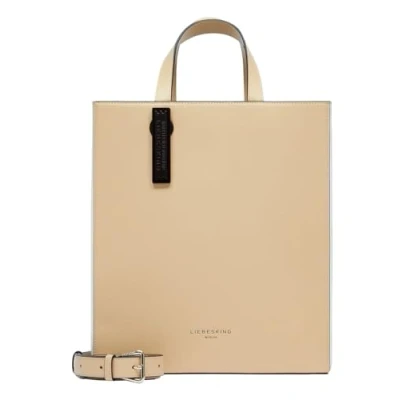LIEBESKIND Berlin Paper Bag M Leather Tote with Jacquard Shoulder Strap and Logo Details Women's Handbag Women Bag, Sandy, small