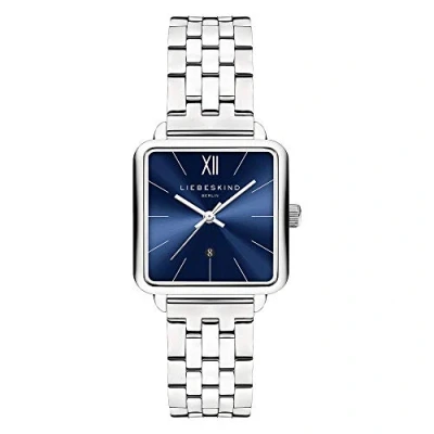 Women's watch from Liebeskind Berlin with stainless steel case, Japanese quality movement and high-quality stainless steel strap. It not only promises the best wearing comfort, but also gives you a unique feeling in any outfit Extra-flat case made of polished, silver-coloured stainless steel, 28 x 28 mm, case height 7 mm, scratch-resistant mineral glass. Silver-coloured hour indexes on the blue dial ensure optimal readability High quality silver stainless steel bracelet. Strap length: 195 mm, folding clasp Water resistance tested up to 3 bar / 3 ATM Packaged in an original Liebeskind Berlin gift box