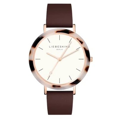 Quartz women's watch from Liebeskind Berlin with acetate/metal case and high-quality leather strap. It not only promises the best wearing comfort, but also gives you a unique feeling in any outfit. Acetate/metal housing IP rose gold polished, diameter 37 mm; scratch-resistant mineral glass, water resistance tested up to 3 bar/ATM High-quality leather strap with pin buckle Easy-to-read dial Packaged in an original Liebeskind Berlin gift box.