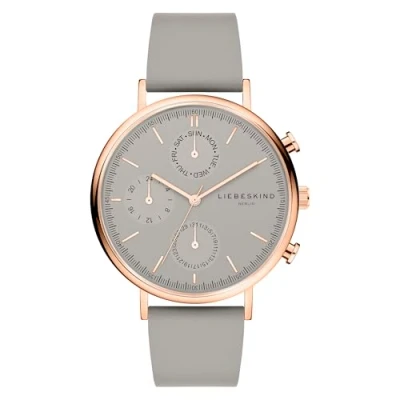 Multifunctional women's watch from Liebeskind Berlin with stainless steel case and high-quality stainless steel strap. It not only promises the best wearing comfort, but also gives you a unique feeling in any outfit. Stainless steel case IP rose gold polished, diameter 38 mm; scratch-resistant mineral glass, water resistance tested up to 5 bar/ATM High-quality stainless steel strap with folding clasp Easy-to-read dial Packaged in an original Liebeskind Berlin gift box.