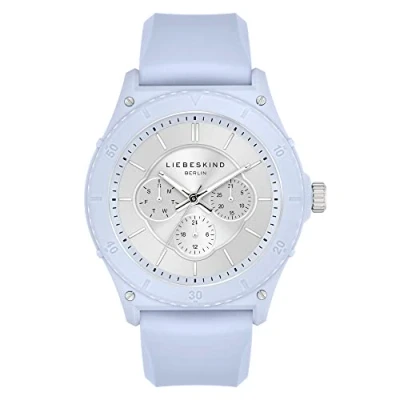 Women's multifunctional watch from Liebeskind Berlin with plastic case and high-quality silicone strap; this beautiful women's watch not only promises the best wearing comfort, but is also a real fashion statement on the wrist Matte plastic housing, diameter 44 mm; scratch-resistant mineral glass, water resistance tested up to 5 bar/ATM High-quality silicone strap with pin buckle Easy-to-read dial Packaged in an original Liebeskind Berlin gift box