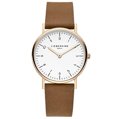Two-hand women's watch with stainless steel case and high-quality brown leather strap, comfortable to wear, the watch stands out due to its special indexes, which are supported by a rose gold case Polished stainless steel case, diameter 34 mm, scratch-resistant mineral glass, water resistance tested up to 5 bar/ATM High-quality leather strap with pin buckle, the easy-change system with interchangeable spring bars ensures easy changing of the strap Easy-to-read dial Packaged in an original Liebeskind Berlin gift box