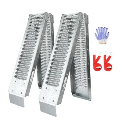 Compact Storage: LIEKUMM loading ramps for vans measure 170 × 22 × 4.7 cm unfolded and 90 × 22 × 10 cm folded. Suitable for loading heights below 60 cm. Please measure before purchase to ensure this van ramp fits your vehicle Bulit to Last Steel Material: With up to 440 kg load capacity per pair, LIEKUMM motorbike ramps for vans are both wear- and rust-resistant which are made from durable steel. Ideal as a motorcycle ramp or mobility scooter ramp for regular loading use Anti-Slip Design for Safer Surface: Surface of hollow out design on LIEKUMM loading ramps improves drainage and strengthen traction in all weather. Equipped with EVA anti-skid pads, these reliable vehicle ramps provide safer loading, please always load slowly during use for best stability Thoughtful Safety Details: LIEKUMM foldable heavy duty van ramps include carrying handle for easy transport. Included gloves improve grip and comfort during use. Equipped with towing straps, it can be used safely in any situation Suitable for Multiple Vehicles: Single LIEKUMM motorcycle ramp supports up to 220 kg; 2-pack ramps support up to 440 kg. Ideal for motorcycles, bikes, vans, E-bikes, dirt bikes, pickup trucks, mobility scooters, wheelchairs, lawn tractors, ATVs ans UTVs