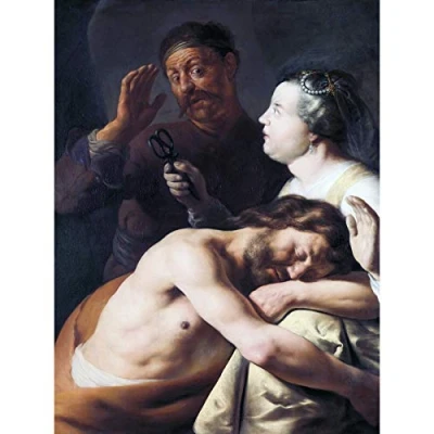 Lievens Samson Delilah Schere Bibel Biblische Malerei Groß Wand Kunst Druck Leinwand Premium Wandbild