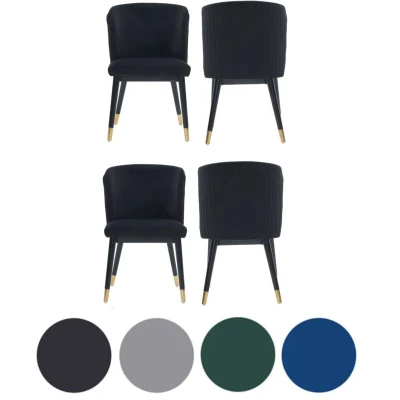 General description Give your dining space a fresh and modern upgrade with the Sofina Velvet Dining Chair. Covered in soft velvet, this chair features a rounded back with simple vertical tufting that adds a classy touch. The curved backrest gently supports your body, while the padded seat ensures comfort whether you're eating, working, or relaxing. With a strong wooden frame and black rubberwood legs tipped with shiny gold, this chair exudes a modern and elegant feel. Its clean design makes it suitable for dining rooms, home offices, or as an accent chair throughout your home. Technical specifications Height: 92 cm Depth: 69 cm Width: 50 cm Seat Height: 48 cm Other information Upholstered in soft, high-quality velvet fabric Foam cushioning for long-lasting comfort Elegant tufted backrest with curved design Sturdy wooden frame for enhanced durability Strong rubberwood legs for reliable support