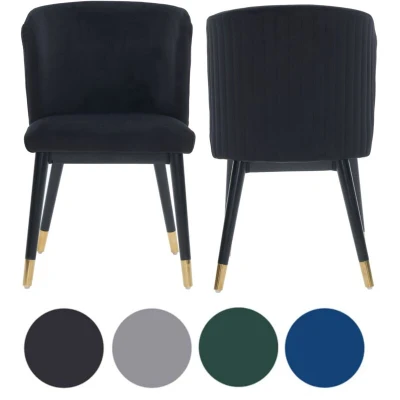 General description Give your dining space a fresh and modern upgrade with the Sofina Velvet Dining Chair. Covered in soft velvet, this chair features a rounded back with simple vertical tufting that adds a classy touch. The curved backrest gently supports your body, while the padded seat ensures comfort whether you're eating, working, or relaxing. With a strong wooden frame and black rubberwood legs tipped with shiny gold, this chair exudes a modern and elegant feel. Its clean design makes it suitable for dining rooms, home offices, or as an accent chair throughout your home. The Sofina chair is crafted to be both beautiful and practical for everyday use. Technical specifications Height: 92 cm Depth: 69 cm Width: 50 cm Seat Height: 48 cm Other information Upholstered in soft, high-quality velvet fabric Foam cushioning for long-lasting comfort Elegant tufted backrest with curved design Sturdy wooden frame for enhanced durability Strong rubberwood legs for reliable support