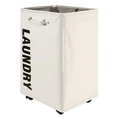 Lifesela 22" Pro Rolling Laundry Basket, Large Hamper on Wheels, Collapsible Dirty Clothes with Drawstring Mesh Cover, Corner Storage Basket Bin Handle (Beige)