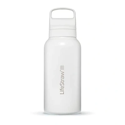 LifeStraw Go Series — Insulated Stainless Steel Water Filter Bottle for Travel and Everyday Use Removes Bacteria, Parasites Microplastics, Improves Taste, 1L Polar White