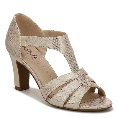 Faux leather or microsuede upper with a peep toe and stretch gore panels Easy fit with the SimplyComfort collection Traction sole provides you with extra stability Just Right Height 3 inch wedge heel Available in medium and wide width sizes