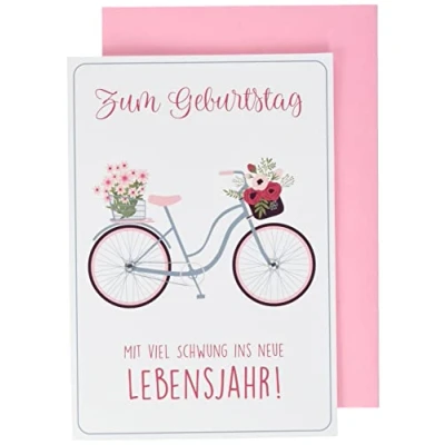 Greetings card, greeting card, card Birthday Includes envelope in: pink Birthday card lifestyle bicycle 11.6 x 16.6 cm