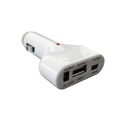 Car Charger with USB port, Mini USB and 12/24 V DC