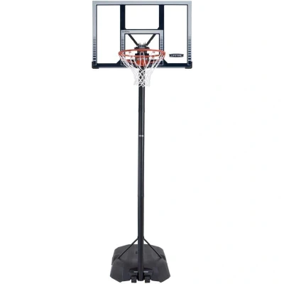 General description This Lifetime Adjustable Portable Basketball Hoop features a 44-inch steel-framed shatterproof backboard and a Quick Adjust II height adjustment mechanism that allows for easy height adjustments from 8 to 10 feet. It includes a Slam-It Rim with an all-weather nylon net and a sturdy 3-inch diameter round steel pole. The 34-gallon portable base ensures stability and can be easily relocated, making it perfect for residential use. Technical specifications Backboard Size: 44 in. (111.7 cm) Base Dimensions: 49.5 in. x 30.5 in. x 8.2 in. (127.7 x 77.4 x 20.8 cm) Base Size: 34-Gallon Pole Size: 3 in. (7.62 cm) Round Adjustment Range: 8 ft. - 10 ft. (2.4 m - 3.0 m) Adjustment Increments: 6 in. (15.2 cm) Total Dimensions: 148.25" x 91.1" x 49.5" Weight: 70 g (All-Weather Net) Warranty: 5-Year Limited Installation Fill the heavy-duty portable base with sand or water for stability. No cement is required for setup. Usage Adjust the rim height using a broomstick to accommodate
