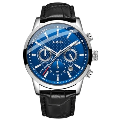 LIGE Watch Men's Fashion Waterproof Sports Chronograph Analogue Quartz Stainless Steel Leather Bracelet Rose Gold Dial Wristwatch