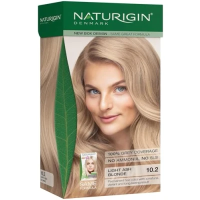 NATURIGIN Hair Dye Light Ash Blonde 10.2 creates a cool ash blonde hair colour, perfect for achieving a cold blonde colour. Additionally, this hair colour can be used to create highlights, adding ashy tones to your hair. Enjoy professional salon-quality results. Covers grey hair up to 100%. Made with natural ingredients. This hair colour is an ammonia free hair dye, without parabens, and SLS so it is gentler on the scalp and hair. An advanced naturally derived formula, with a unique blend of certified organic lemon and mandarin essential oils, as well as 10 other pure and gentle organic extracts and natural oils that protects the hair during colouring and adds shine and nourishment to your hair. NATURIGIN has succeeded in creating a hair colour that only needs to work in the hair for 30 minutes. Get a full hair dye kit with hair dye gloves included. Choose from 20 hair dye colours, including brown, blonde, red, and platinum. Find your perfect new hair dye and elevate your style with our selection of certified natural hair colour.