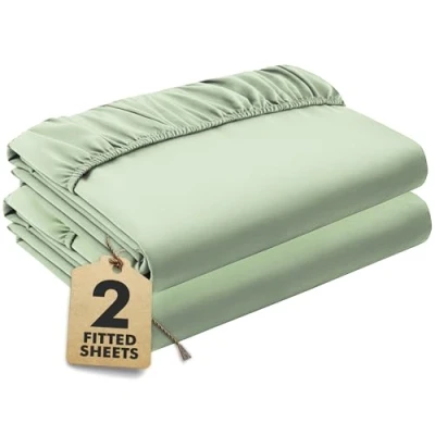 Light Green Fitted Sheet Double Beds (135x190 cm, Deep 35 cm) Pack of 2 Soft Microfibre Elasticated Cover Breathable, Durable & Easy Care Bottom