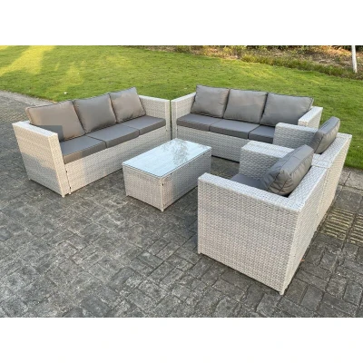 Light Grey Outdoor pe Rattan Garden Furniture Set Wicker Sofa Oblong Coffee Table 2 Armchair Fimous
